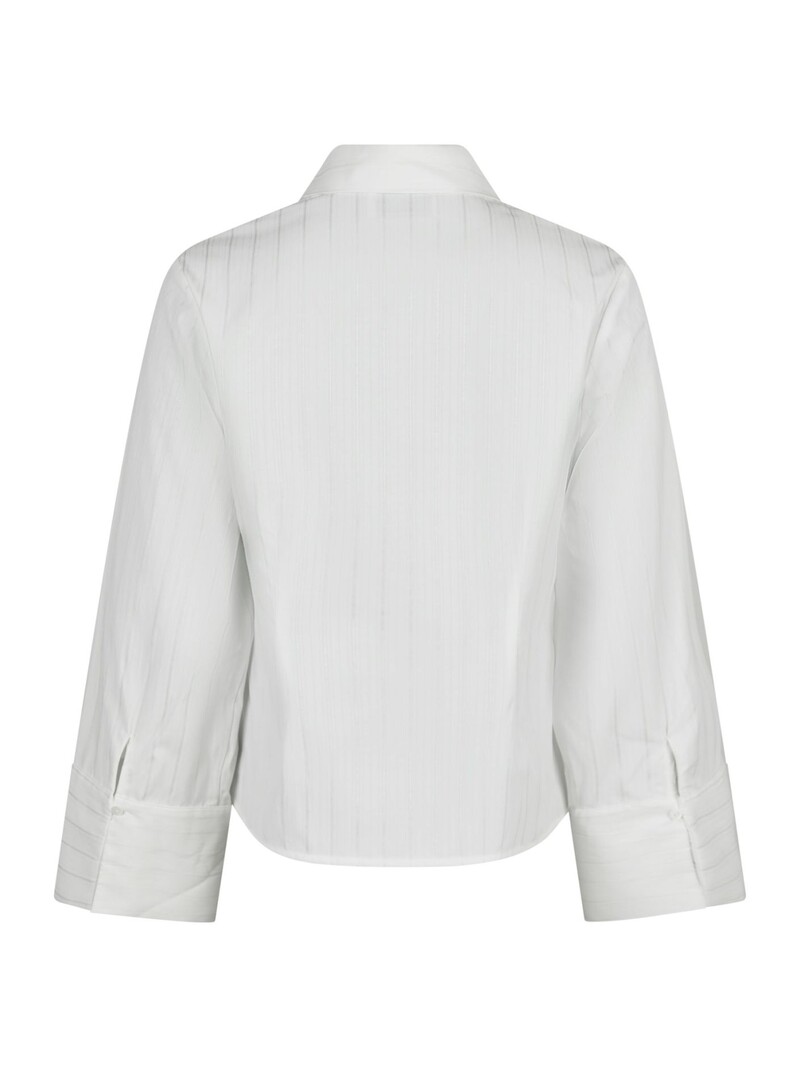Smukkeste skjorte fra Neo Noir. Denne skjorte er designet i en kort model med en klassisk krave, lange og brede ærmer, med bred manchet med knaplukning. Skjorten har det fineste tone i tone strib, der skaber et feminint og sofistikeret look. Style den med dine yndlings jeans eller en nederdel.