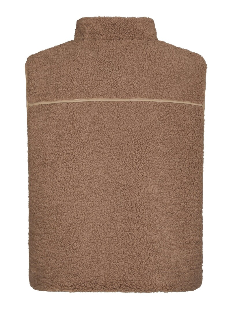 Smart kort vest fra Neo Noir. Vesten har en høj hals og er fremstillet i en lækker blød teddy kvalitet i lys brun med kontrastfarvede lommer. Den lukkes med lynlås. Perfekt til hverdag og fest.