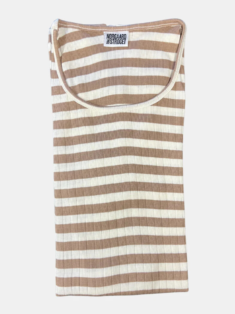 Klassisk klar lysebrun / ecru stribet T-shirt model #101 fra Nørgaard på Strøget.