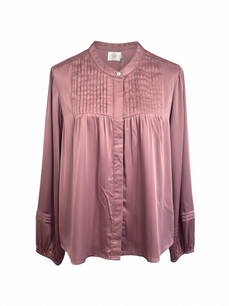 Smuk skjorte fra Wauw. Den har en kinakrave, smukke detaljer på brystet og ærmerne. Ærmerne har elastik i enden for ballon effekt. Foran lukkes skjorten med skjulte knaplukninger. Skjorten har en afslappende pasform.